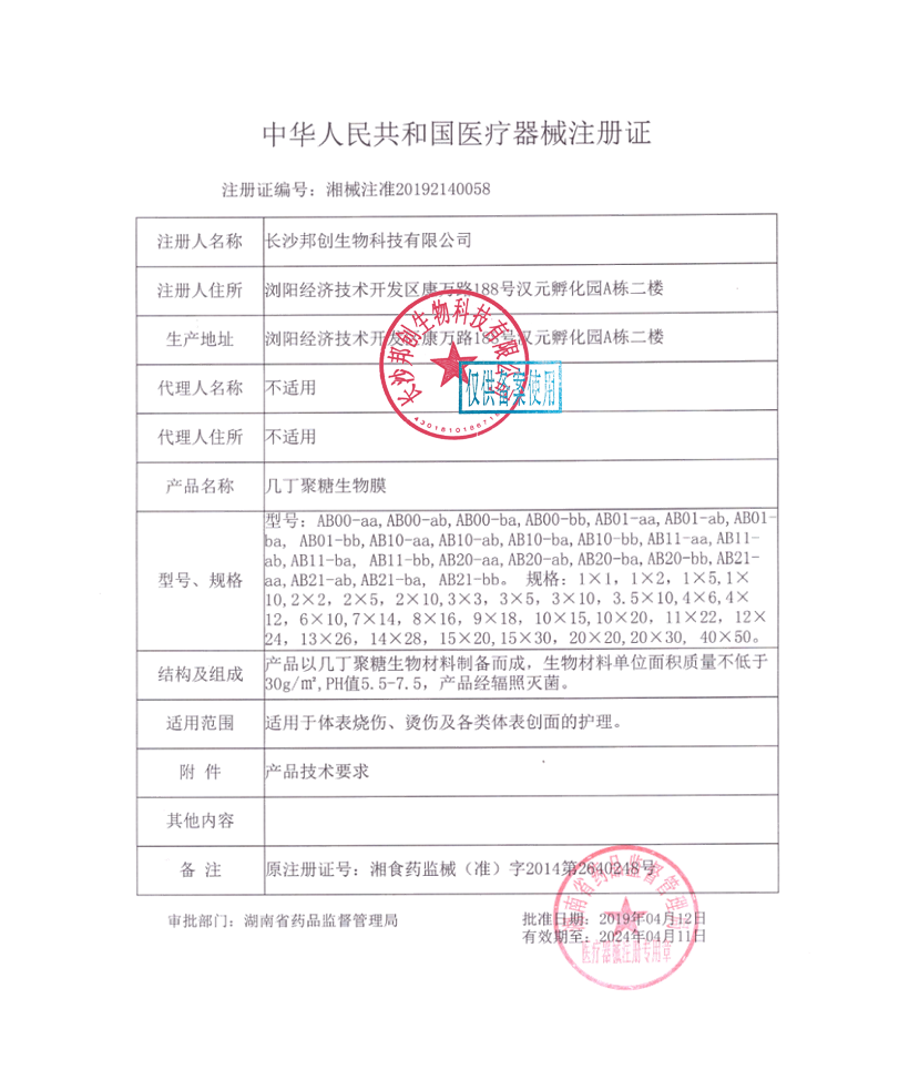 幾丁聚糖生物膜-注冊證
