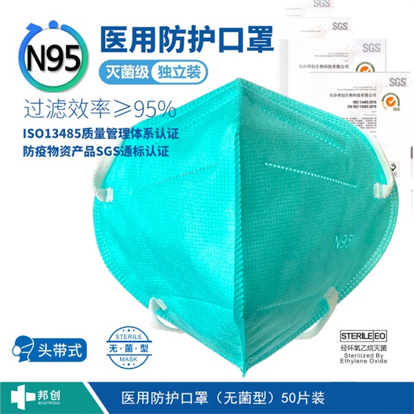邦創(chuàng)N95口罩,醫(yī)用防護(hù)無菌口罩,獨(dú)立包裝,N95折疊式1只/袋共50只/盒